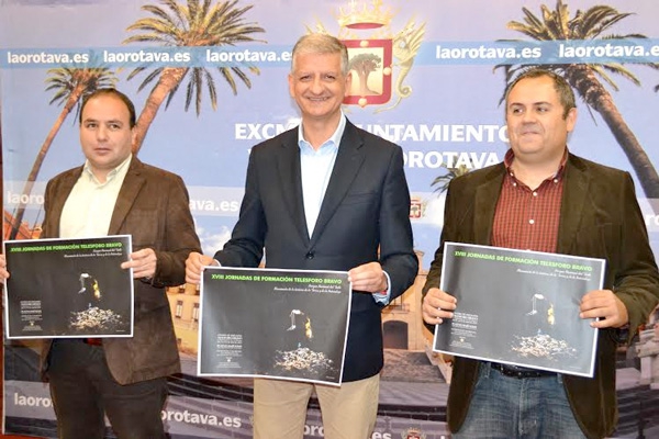El alcalde de La Orotava, Francisco Linares, y el edil delegado de Medio Ambiente, Luis Perera, acompañados de Jaime Coello, presentaron las jornadas este lunes 20 de abril en el Consistorio villero. Linares destacó que se "sigue dando pasitos en la cultura", y valoró que un evento de estas características, con gran rigurosidad y organización, además de su valor didáctico, divulgativo y favorecedor de la protección del entorno, "se mantenga en el tiempo y además tenga perspectiva de mucho futuro". Por otro lado, agradeció la presencia de Coello quien presentó las principales directrices de la Fundación Telesforo Bravo y Juan Coello, que se prevé poner en marcha en breve y estará vinculada a la celebración de estas conferencias. Francisco Linares se comprometió con apoyo institucional y económico a este interesante proyecto, y espera que el Cabildo de Tenerife y el Gobierno de Canarias, así como otros ayuntamientos, se comprometan también.
