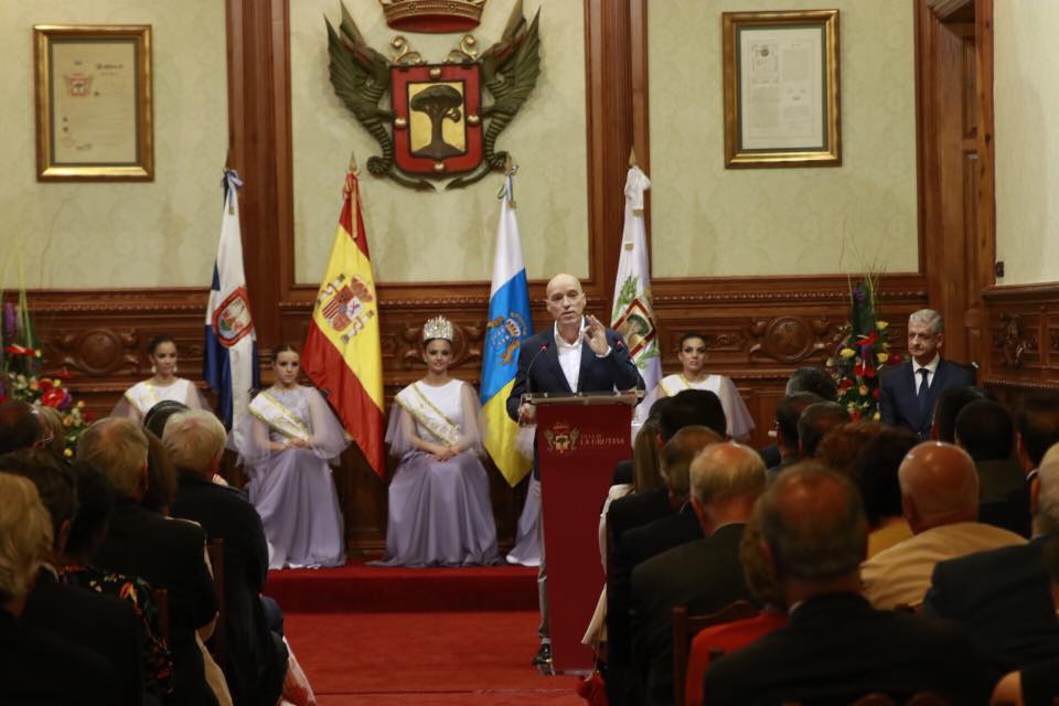 El orotavense Juan Bosco González ha dado el pistoletazo de la salida a los días grandes de las Fiestas de La Orotava con la lectura del pregón, que ha tenido lugar este martes, 5 de junio, en el Salón Noble de la Casa Consistorial. El escritor y filósofo villero ha disertado sobre estos festejos, dando una interesante perspectiva bajo el título “Sobre todo, de aquí”.