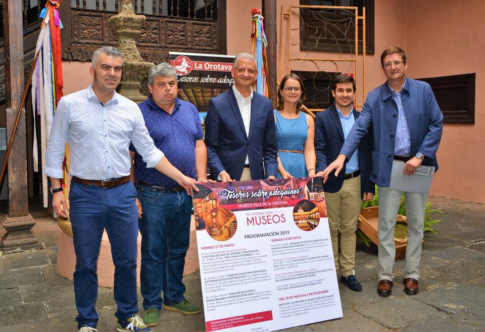 Este interesante programa se presentó en la mañana de este jueves [16 de mayo] en el Centro del Arte Efímero, y contó con el alcalde Francisco Linares y la concejala delegada de Museos y Turismo, Delia Escobar, así como con los representantes de los cuatro museos de La Orotava: Ricardo Cólogan del Museo de Artesanía Iberoamericano (MAIT); Jesús García, del museo etnográfico de Pinolere; el coordinador del citado centro de Interpretación, Sergio Martín, y Adolfo Padrón, del Museo Sacro.
