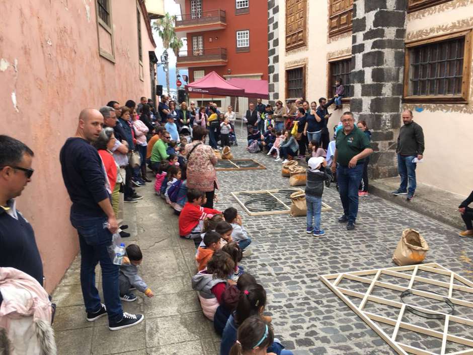 El Día del Niño es un día especial en la Villa. Cerca de un centenar de pequeños, acompañados de sus padres y amigos, disfrutaron, en el entorno de la Iglesia de la Concepción, de la confección de alfombras, aprendiendo este arte efímero de forma amena y divertida. Guiados por los alfombristas realizaron los tapices florales que son seña de identidad de las fiestas en honor al Corpus Christi en la celebración de la Infraoctava, a la par de conocer más detalles sobre la historia e implantación de este arte efímero en el municipio. Esta actividad se desarrolla desde hace 26 años, coordinada por la Asociación de Alfombristas Villa de La Orotava y el Ayuntamiento a través de la Concejalía de Fiestas que dirige Delia Escobar.