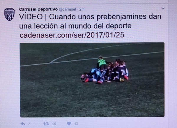 Los jugadores del prebenjamín del grupo B y el C, niños de 5, 6 y 7 años, han mostrado los mejores valores del fútbol, dando toda una lección. Son todo un ejemplo que deberían seguir muchos...