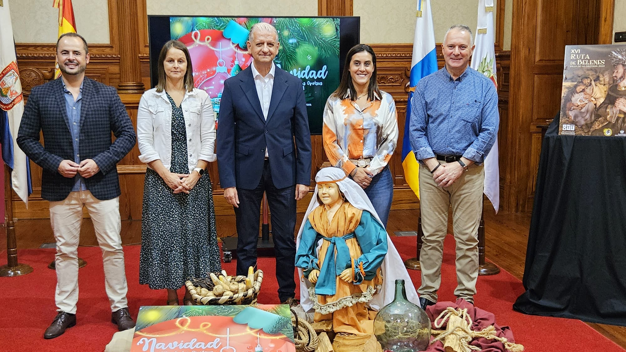 Un año más, La Orotava ofrece un amplio abanico de actos para celebrar y vivir, de una forma amena y divertida, una de las fiestas más entrañables del año como es la Navidad. En la mañana de este miércoles [22 de noviembre] se presentó la agenda que se desarrollará a lo largo de mes y medio y que engloba unos 120 actos lúdico, culturales, religiosos, y para todos los públicos y edades. El acto de presentación estuvo a cargo del alcalde Francisco Linares; el concejal de Fiestas, Alexis Pacheco; la concejala de Comercio, Deisy Ramos, y el presidente de la Asociación Belenista Taoro, Esteban García Morales.