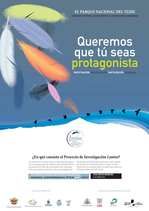 Además del Centro de Educación Ambiental Municipal (CEAM) del área de Medio Ambiente del Ayuntamiento de La Orotava, también son organizadores y promotores de proyecto el Cabildo de Tenerife, el Gobierno de Canarias y el Parque Nacional del Teide. Asimismo, se cuenta con la colaboración de la Universidad de Oviedo, el CSIC, SEO Birdlife y la Fundación Telesforo Bravo.