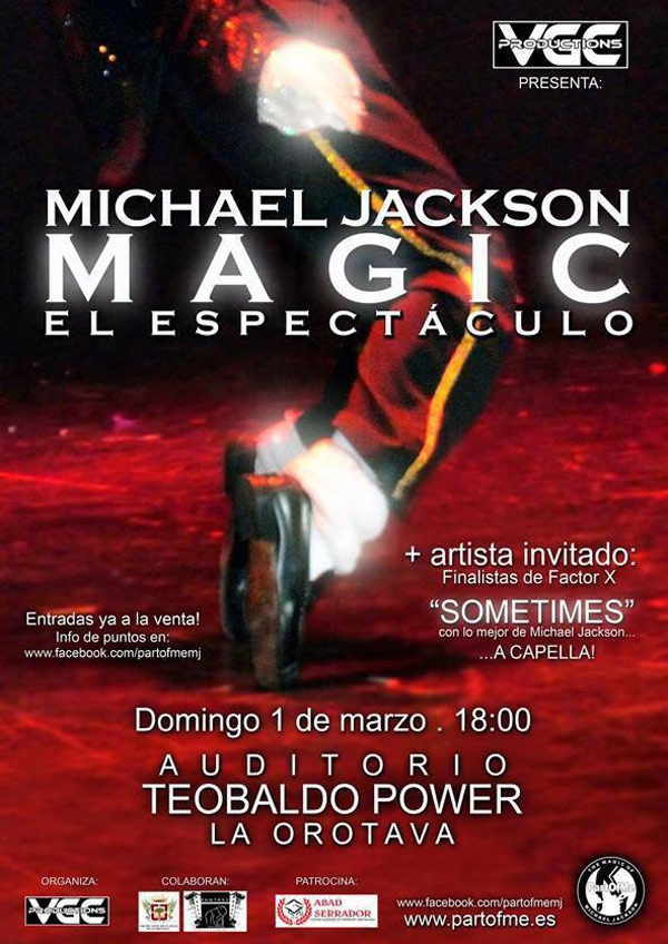 Parte de los fondos que se recauden con la venta de entradas se destinará a fines benéficos. Se trata de un proyecto de VGC Productions y Espectáculos Bravo que contará con el artista invitado Sometines, grupo finalistas del programa Factor X, que interpretará lo mejor del repertorio de Jackson a capela.