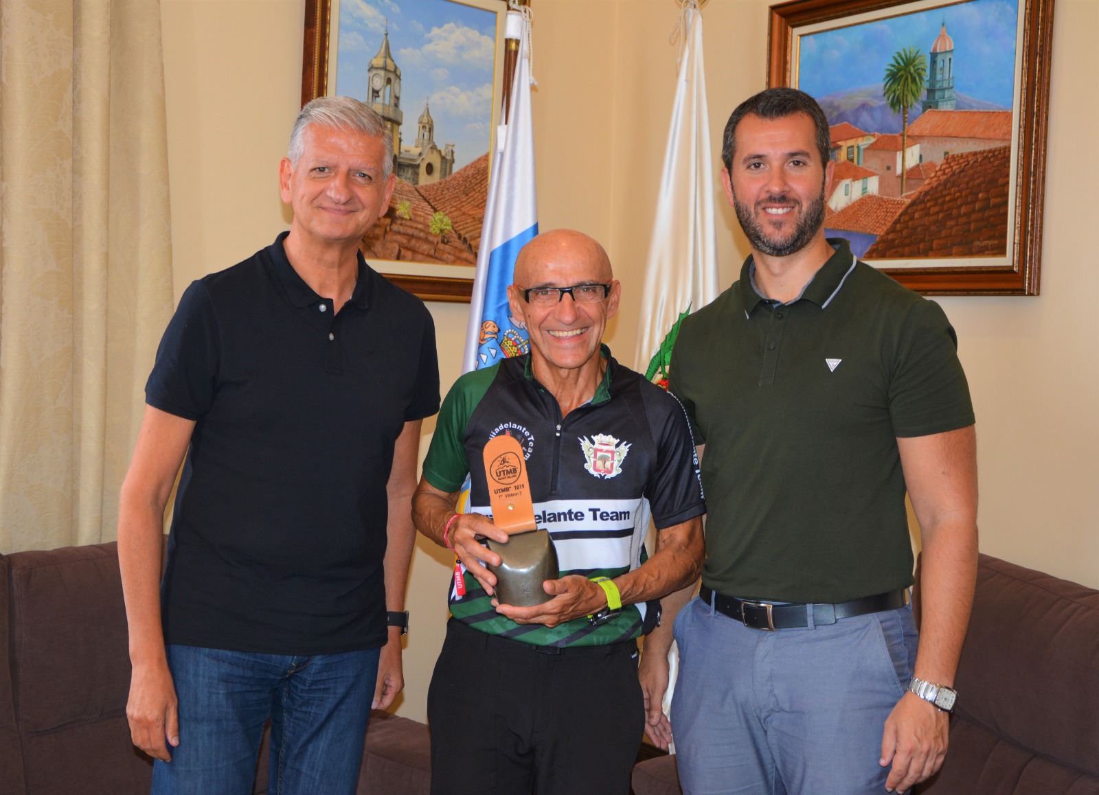 El alcalde de La Orotava, Francisco Linares, y el edil delegado de Deportes, Antonio Lima, recibieron en la mañana de este jueves, 12 de septiembre, a Miguel Ángel García, conocido por todos como Kiko, quien ha vuelto a demostrar ser el mejor entre los veteranos de su categoría (Veteranos 3) en una de las pruebas más importantes del mundo del ultra-trail, en la UTMB.