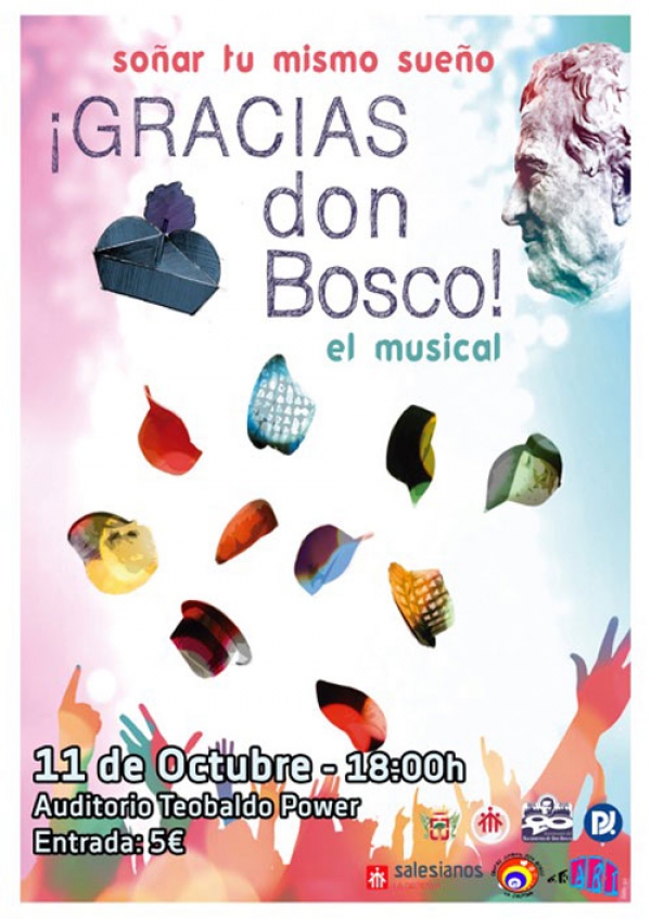 Próxima representación del Musical “Gracias Don Bosco”. Será este 11 de octubre a las 18:00h en el Auditorio Teobaldo Power; coste de la entrada: 5€ (a la venta en el Colegio Salesiano).