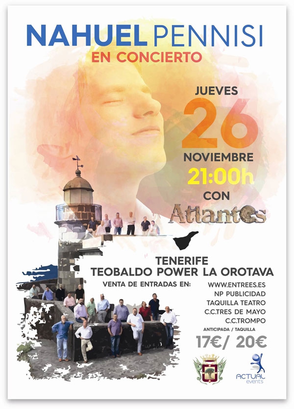 Este joven cantante argentino actuará junto al grupo Atlantes el jueves, 26 de noviembre, en el Auditorio Teobaldo Power de La Orotava.