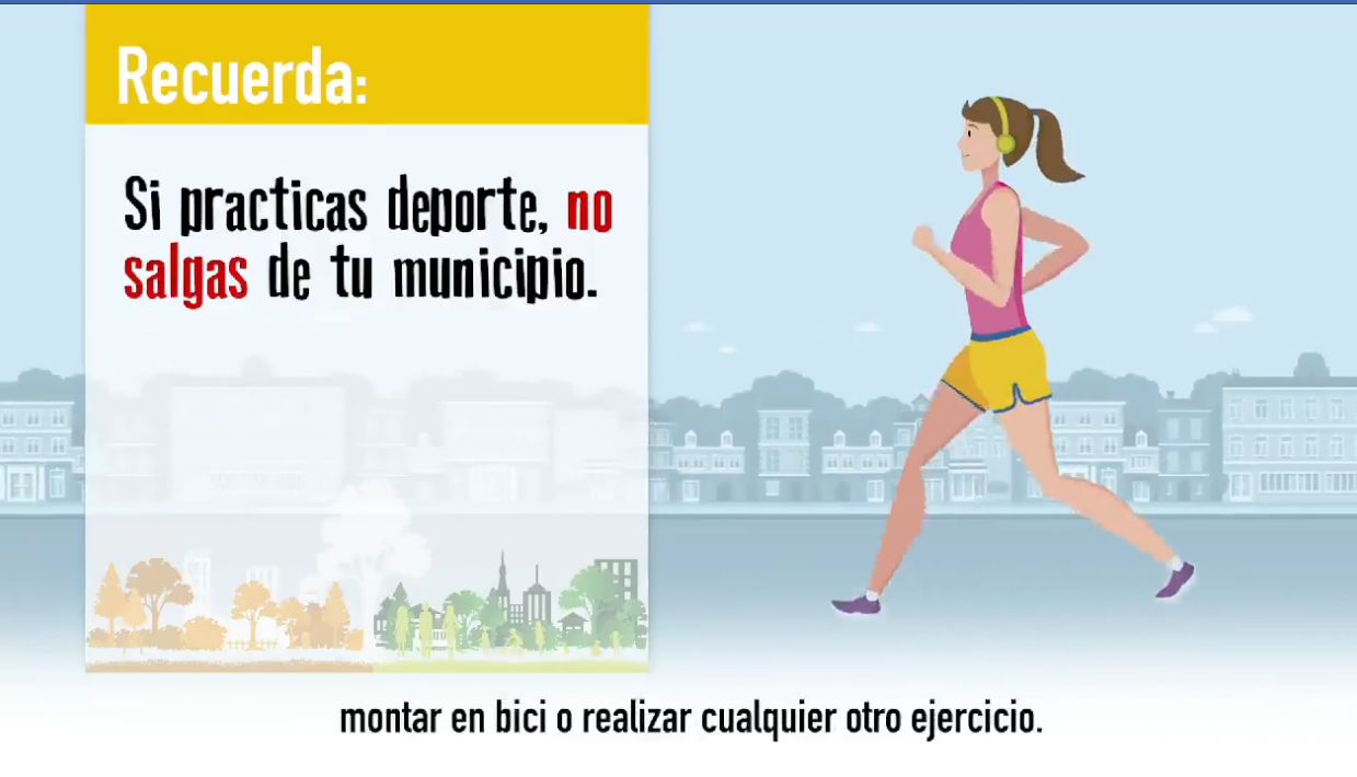 - Podremos hacer deporte dentro del término municipal donde residimos y NO se autoriza el desplazamiento en vehículo.
