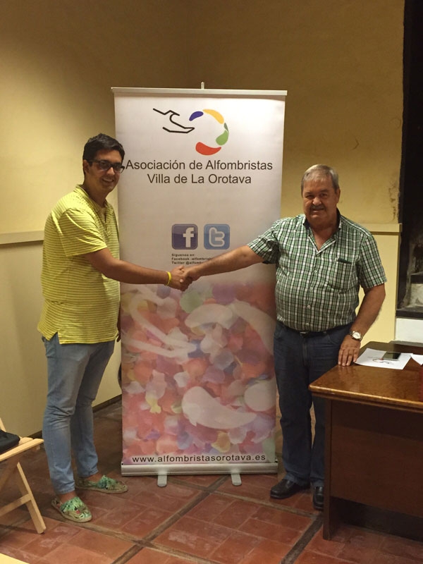 El pasado miércoles 16 de septiembre se producía un cambio en la presidencia de la Asociación de Alfombristas de La Orotava. Por reglamento interno se celebraban elecciones a este cargo, el cual había ocupado desde su fundación Jesús Rodríguez, que ha sido un baluarte en esta entidad. Le sucede en el puesto Leo Rodríguez, el cual ha presentado su candidatura con el fin de coger las riendas de esta organización.