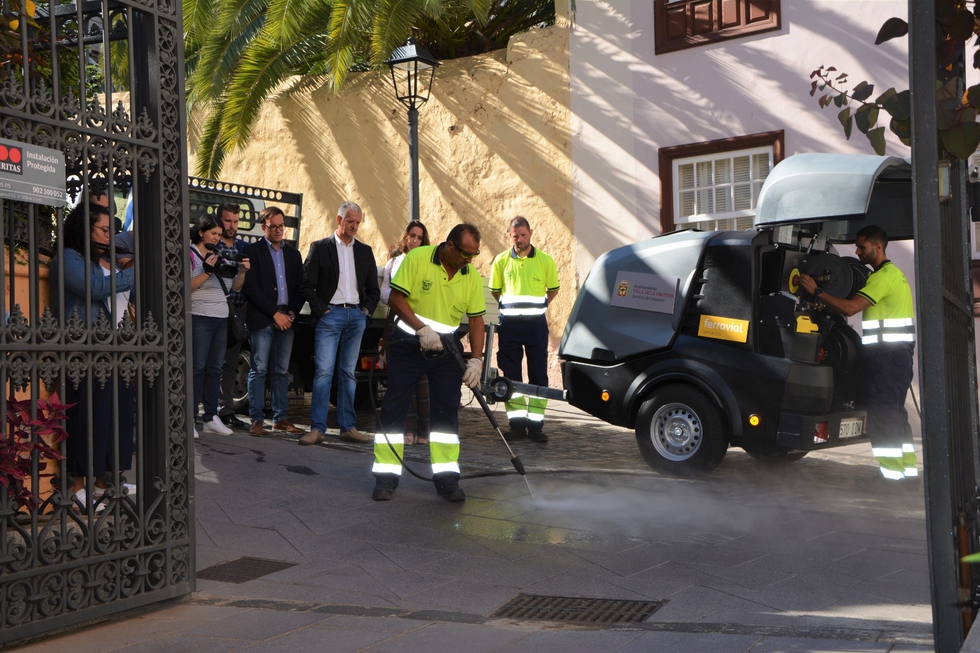 El alcalde valoró la incorporación de este nuevo equipo específico que favorece la modernización y optimización de los trabajos de limpieza en el municipio, ya que La Orotava tiene un sello de calidad y con estas mejoras se logrará mantenerlo y mejorar la imagen de remozamiento y cuidado que siempre se ofrece; sobre todo teniendo en cuenta que es un lugar de gran atractivo turístico, zona comercial por el que pasean diariamente miles de personas, y además tiene todo el año una intensa actividad de eventos. En esta línea, felicitó a todos los operarios por el trabajo ejemplar que realizan diariamente. Asimismo, Linares incidió en que se actuará en todo el municipio, en zona casco y barrios, pero también pidió a los vecinos que contribuyan en mantener limpia La Orotava.