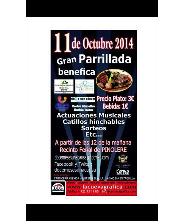Tras lograr reunir a más de 4.000 personas en el mayor guiso de costillas y piñas celebrado en Canarias, en octubre de 2013 y a favor del centro CREVO de La Orotava, en esta ocasión se plantean otro reto importante, organizar una gran parrillada cuyos beneficios serán destinados a cuatro centros: Matilde Téllez, en Puerto de la Cruz, CREVO, Apanate y Pequeño Valiente.
