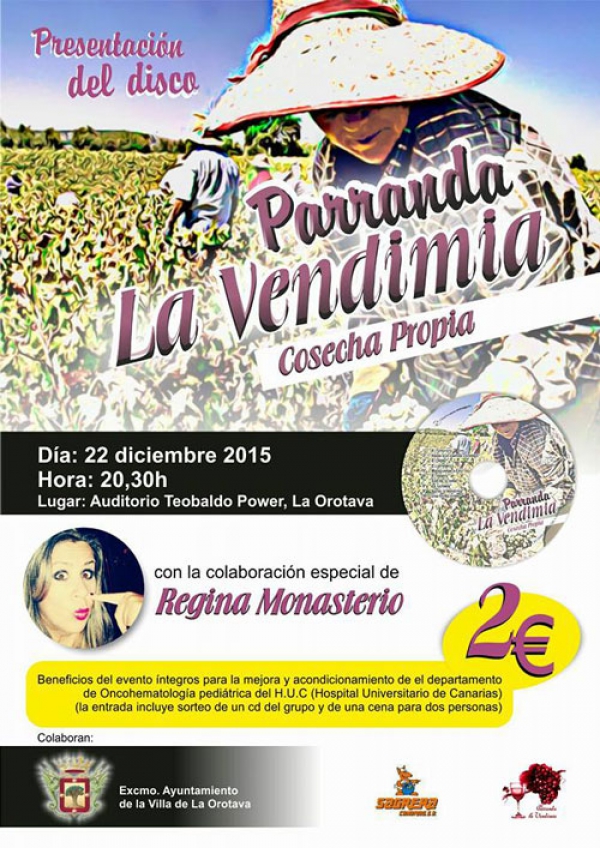 La entrada al tercer Festival Solidario Parranda La Vendimia tiene un coste de 2 euros. Este año toda la recaudación obtenida a través de la venta de entradas se destinará al departamento de Oncohematología pediátrica del HUC (Hospital Universitario de Canarias) con el fin de contribuir a su acondicionamiento y mejora. Además, Parranda La Vendimia también donará a este fin un 1 euro de cada CD vendido.