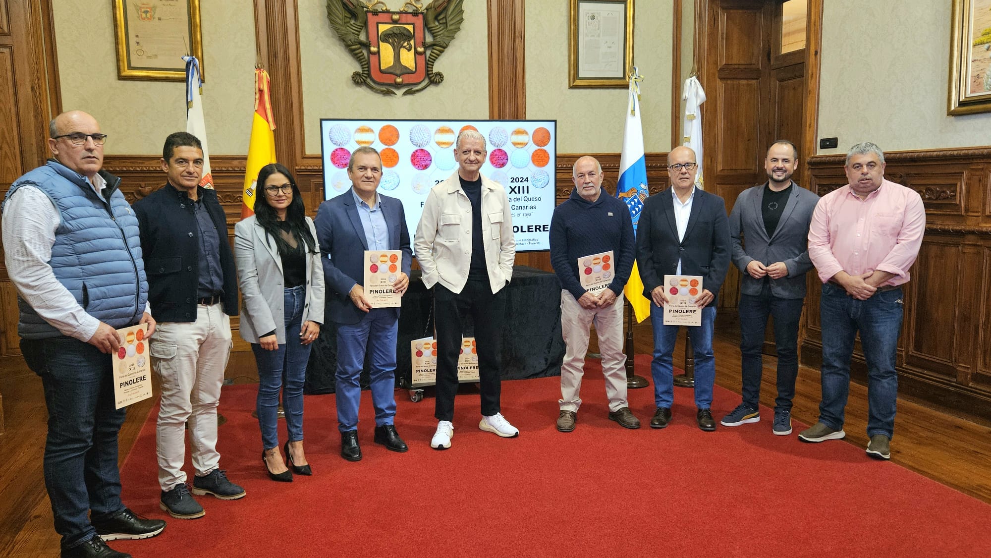 La Feria del Queso, que cumple este año su decimotercera edición es organizada por la Asociación Cultural Pinolere y cuenta con la colaboración del Gobierno de Canarias, Cabildo de Tenerife, Ayuntamiento de La Orotava, y otras entidades privadas. La presentación tuvo lugar este jueves [4 de abril] en el consistorio villero a cargo del alcalde Francisco Linares; el consejero de agricultura del Cabildo de Tenerife, Valentín González; el consejero delegado de GMR, Juan Antonio Alonso, y Leoncio Rodríguez y Jesús García, presidente y gerente de la Asociación Cultural Pinolere, respectivamente.