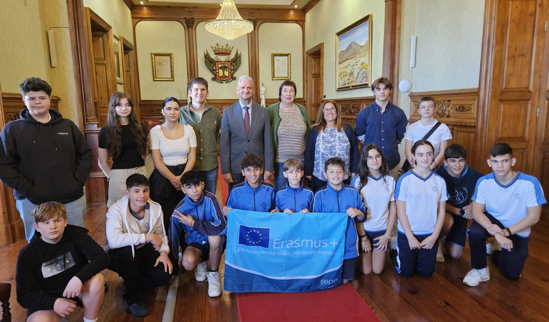 Recepción del Alcalde de La Orotava, Francisco Linares a los alumnos que participan con el Colegio de La Milagrosa en el programa europeo de intercambio ERASMUS "Alemania- España".