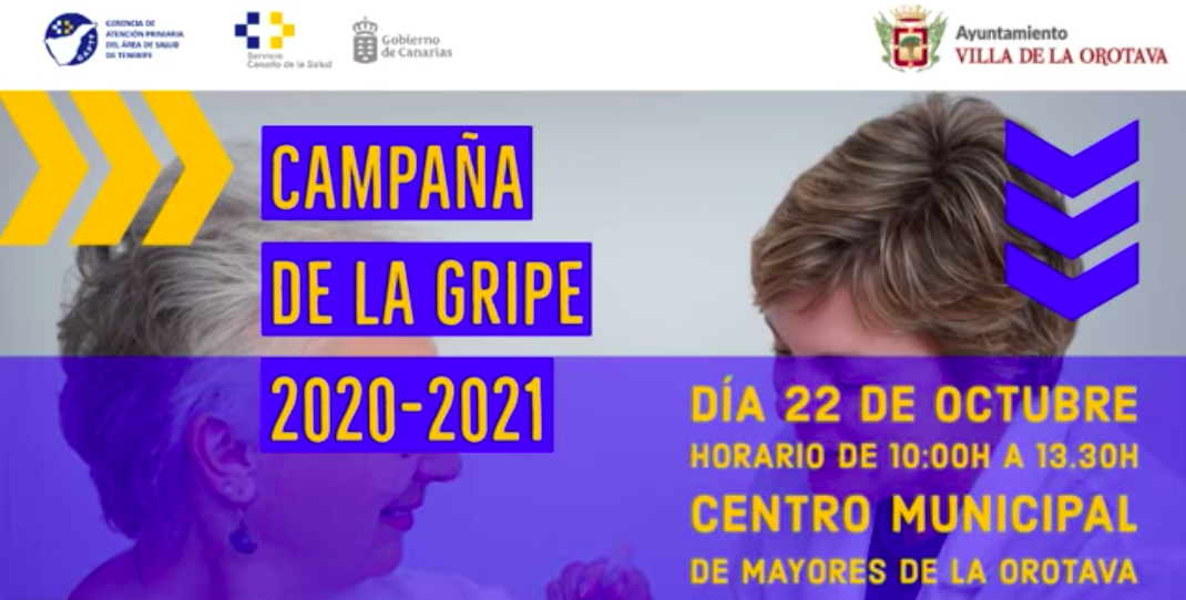 El Ayuntamiento de La Orotava informa que este jueves 22 de octubre, entre las 10:00 y las 13:00 horas, el Centro de Salud Orotava-Dehesas ubicará un punto de vacunación contra la gripe en el Centro Municipal de Mayores de la Villa.