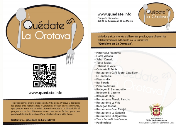 La Orotava ha lanzado una nueva iniciativa innovadora para dinamizar la economía local y en especial ahora el sector de la restauración. “Quédate en La Orotava” es el nombre de la nueva campaña promovida por el área de Desarrollo Económico Local que dirige Felipe David Benítez.