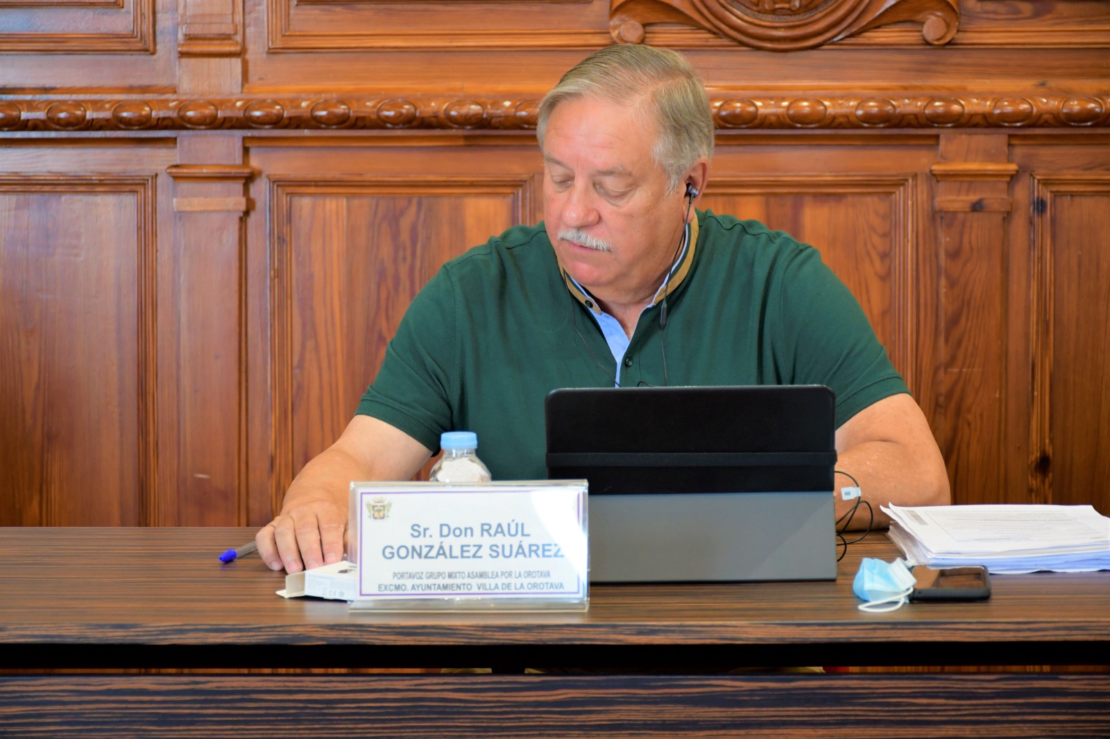 El concejal de Asamblea por La Orotava, Raúl González, entrega su acta como concejal y se ha despedido en su último Pleno, celebrado este martes 28 de julio.