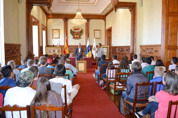 El alcalde de La Orotava, Francisco Linares recibió a los alumnos holandeses de intercambio con el colegio La Salle de San Ildefonso; un grupo formado por 53 alumnos y 5 profesores, alumnos de 3º y 4º de la ESO.