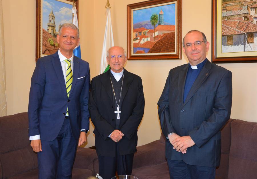 El alcalde de La Orotava, Francisco Linares, recibió en Alcaldía al Obispo Emérito de Ávila y Administrador Apostólico de Ciudad Rodrigo, Jesús García Burillo, con el que contaremos para la celebración de la Infraoctava del Corpus Christi de La Orotava.