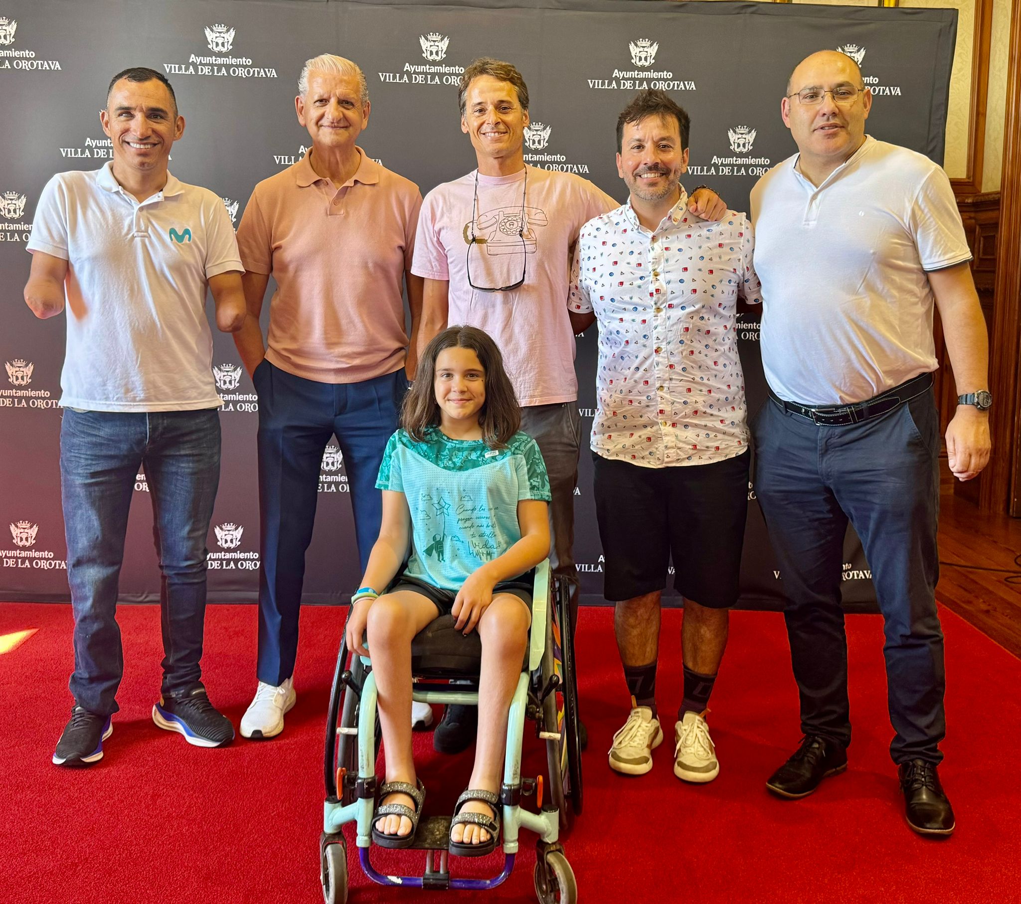 El alcalde de La Orotava Francisco Linares, acompañado del edil de Deportes, Carlos Díaz, recibió en el salón noble de la Casa Consistorial a algunos de los atletas con discapacidad que participarán este sábado 20 de julio en la popular carrera nocturna 8KM Orotava- Hospiten.