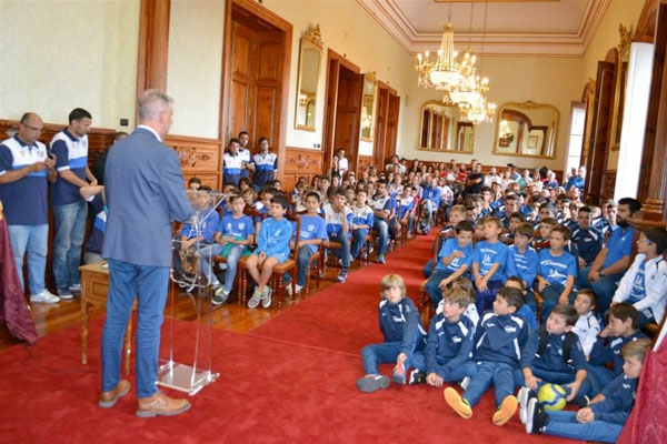 El alcalde Francisco Linares recibió esta tarde a los campeones de diversas categorías y varias modalidades deportivas. Así, se contó con los cinco equipos campeones del Club Deportivo Salesianos: cuatro de fútbol sala: prebenjamín, benjamín, infantil y cadete, campeones de Canarias. Y el infantil de Voleibol, campeones de su liga en Tenerife.