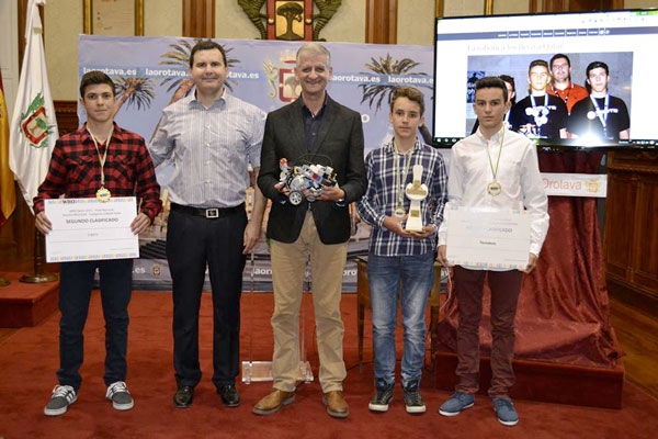 El alcalde Francisco Linares recibió a los tres estudiantes de segundo de la ESO, de 13 años de edad, Lorenzo Amaya, Jorge Juan Arencibia y Gabriel González, quienes participaron en Doha en las Olimpiadas Robóticas Mundiales (WRO). A los jóvenes, ya expertos en la materia robótica, les acompañó el profesor de informática Álvaro Amaya, que es quien les introdujo en este singular mundo. También los acompañaron familiares.