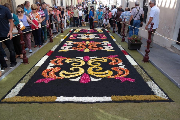 En este día grande La Orotava huele a brezo y flores. Miles de visitantes realizan el recorrido, ya completamente alfombrado, que en unas horas recorrerá el Santísimo.