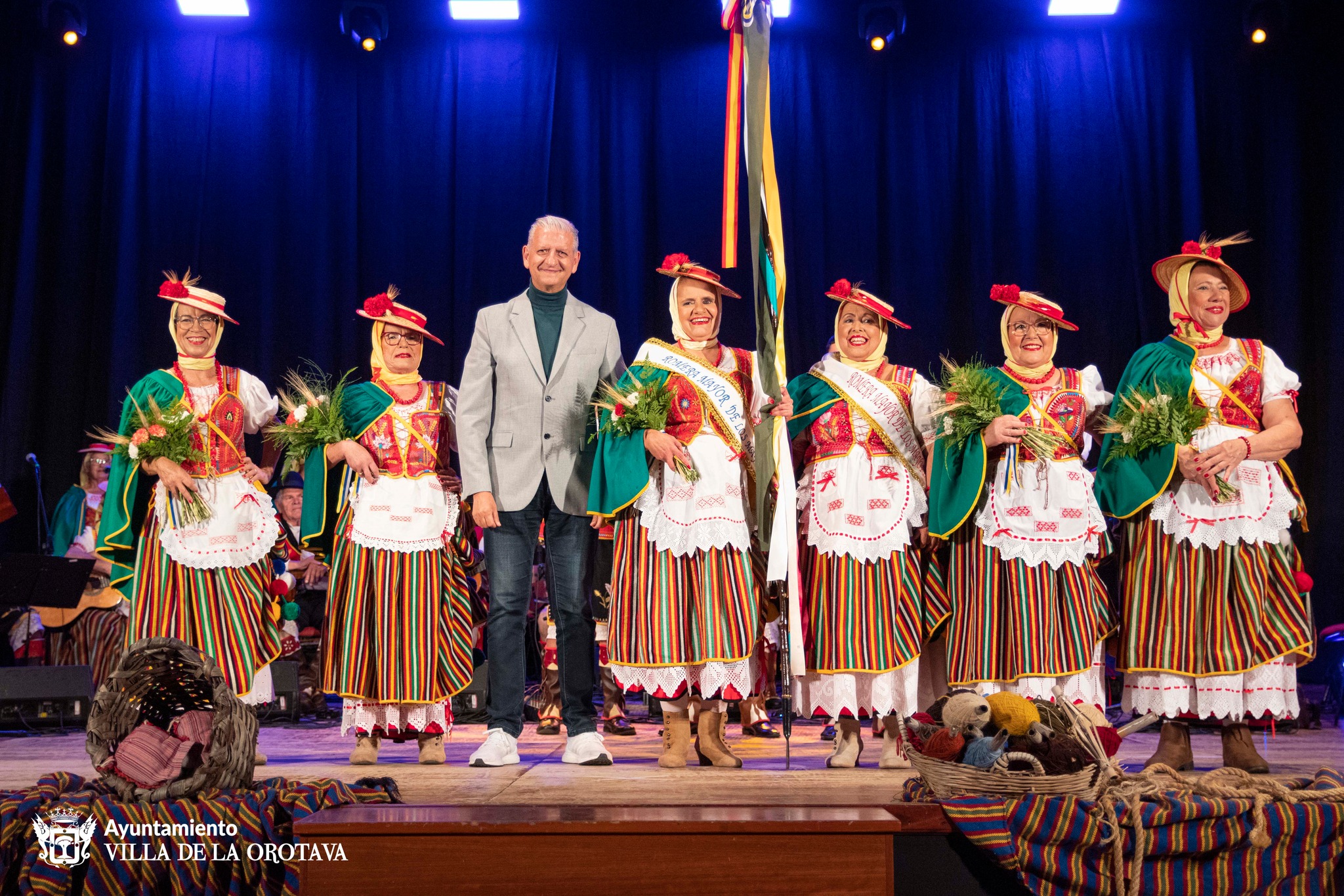 Rosario Luis Rodríguez como Romera Mayor de los mayores, junto a la futura Reina del Corpus Christi y la Romera Mayor de las Fiestas en honor a San Isidro y Santa María de la Cabeza, que se elegirán los días 3 y 10 de junio, respectivamente, representarán al municipio durante las fiestas patronales y llevarán con orgullo el título hasta los festejos del 2024. La Romera de los Mayores saliente, Miguelina Hernández, elegida en el 2022, le entregó la vara con las cintas tradicionales a Rosario Luis, mientras que el alcalde y la concejala de Bienestar Social le entregaron un ramo de flores y la banda distintiva.