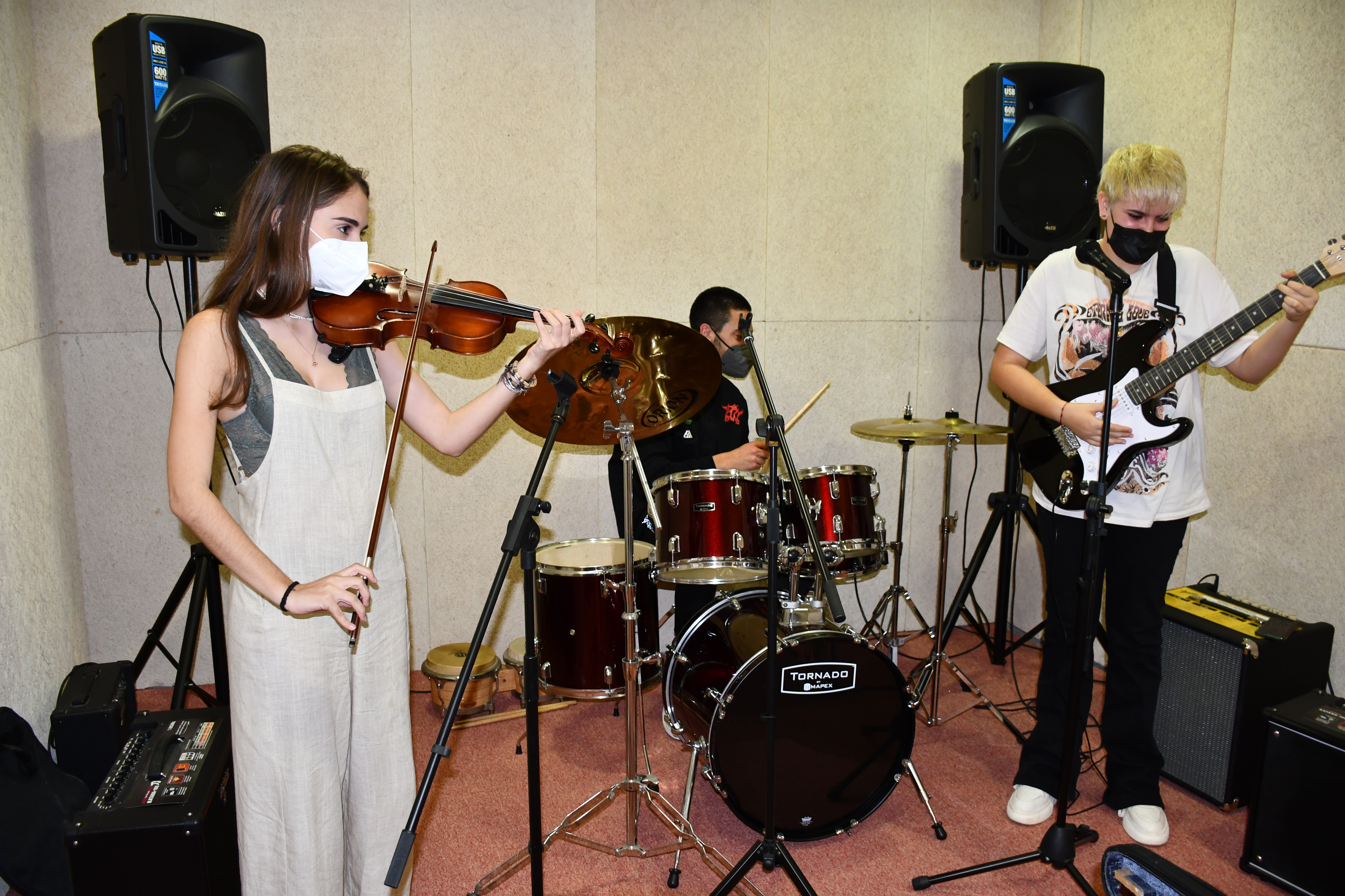 El estudio, que está insonorizado, cuenta con todos los materiales necesarios para que los jóvenes del municipio puedan ensayar y grabar sus propias maquetas, pues el espacio cuenta con una batería, columnas, amplificadores, micrófonos o mesa de sonido entre otros recursos.