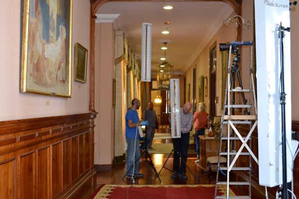 Dos especialistas fotografían en estos días las 8 obras del Museo del Prado que se encuentran en la Casa Consistorial, al objeto de actualizar las imágenes que tienen de éstas y valorar su estado.