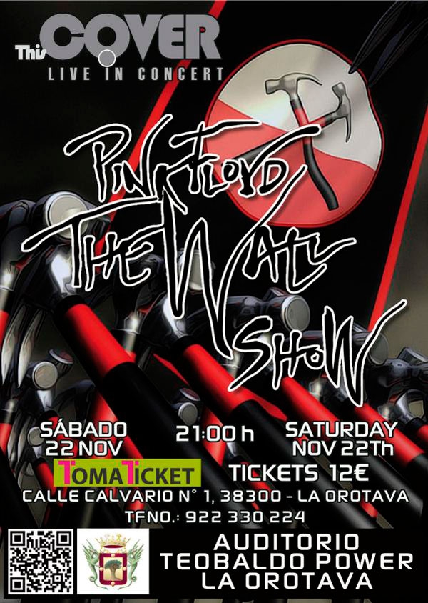 Después de los éxitos obtenidos por ThisCover con la representación de "Pink Floyd The Wall Show" en Teatros tan emblemáticos como el Guimerá en Santa Cruz de Tenerife y el Leal en La Laguna, en los cuales se colgaron los carteles de "no hay entradas", entre otros, se presenta este impresionante espectáculo en el Auditorio Teobaldo Power de La Orotava, con la colaboración de la Concejalía de Cultura del Ilustre Ayuntamiento de la Villa de La Orotava.