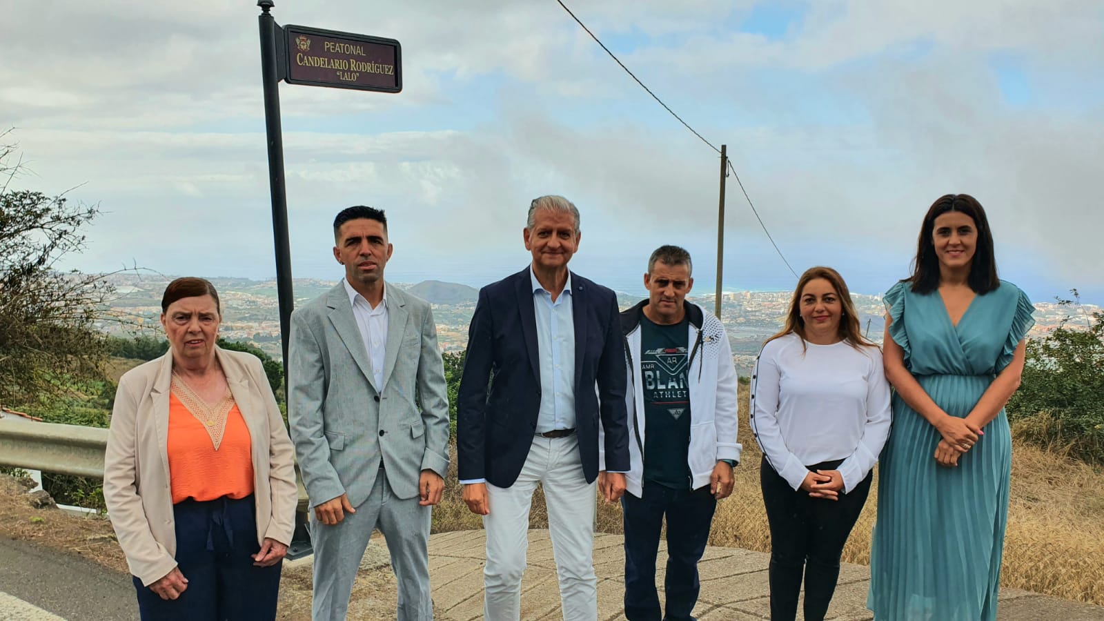 En la rotulación del camino peatonal se contó con familiares, amigos, vecinos y representantes de la Comisión de Fiestas y de la asociación vecinal Centro Hogar 78 que preside Otilia Cabrera Lorenzo. Además de estar representada la corporación municipal con la concejala del barrio Deisy Ramos, los portavoces de los grupos políticos que conforman la corporación municipal y el alcalde Francisco Linares.