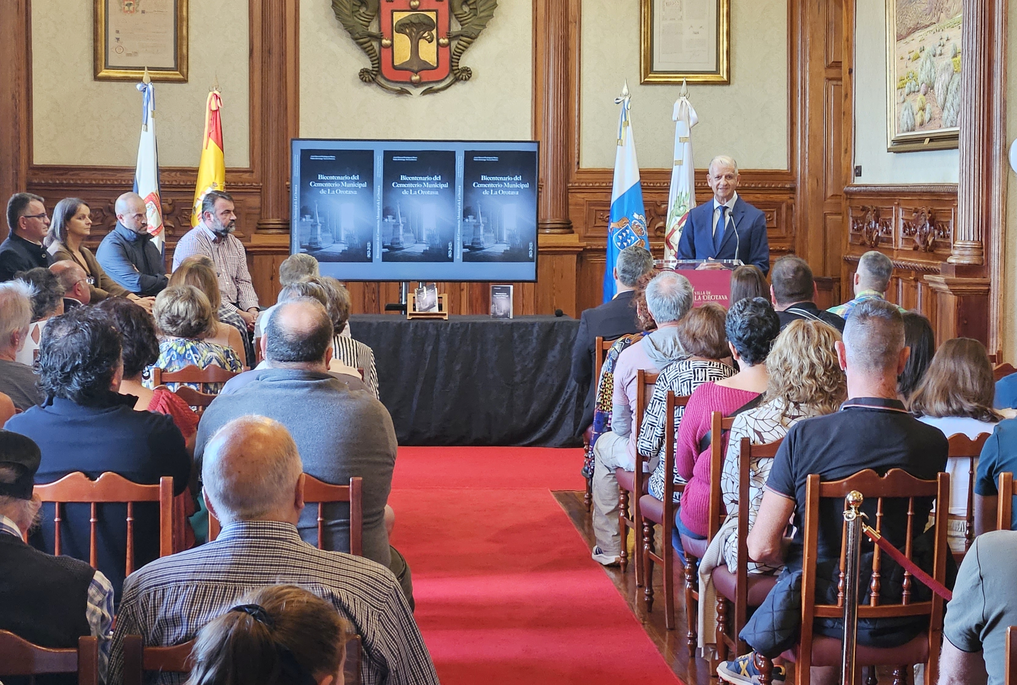 El Cementerio Municipal de la Villa de La Orotava conmemora el bicentenario de su inauguración como lugar de enterramiento permanente de la localidad. Por lo tanto, se cumplen dos siglos de historia de este emblemático espacio cuyo nacimiento se encuentra indisolublemente vinculado al contexto socioeconómico de la época en que fue proyectado. Con motivo de esta celebración, el consistorio villero y la empresa Canaragua publican un libro sobre esta temática y recoge balance de los hechos circunstanciales que rodearon la construcción del camposanto municipal y de la evolución morfológica experimentada por el mismo a lo largo de sus doscientos años de trayectoria, sin olvidar los valores históricos y estéticos que motivaron su declaración como Bien de Interés Cultural con categoría de Monumento, en el año 2005, ni las líneas maestras de la gestión actual del recinto por parte de la entidad Canaragua, concesionaria del servicio de mantenimiento y administración. La publicación es obra del historiador José Maza y de Pablo Torres, gestor técnico municipal de Patrimonio Histórico del Ayuntamiento de la Villa de La Orotava, especializado en la protección y divulgación del Patrimonio Cultural de la localidad. Ambos participaron en el acto de presentación del libro junto al alcalde Francisco Linares, la concejala delegada de Patrimonio Cultural, Delia Escobar, y el representante de Canaragua, Antonio Acosta.