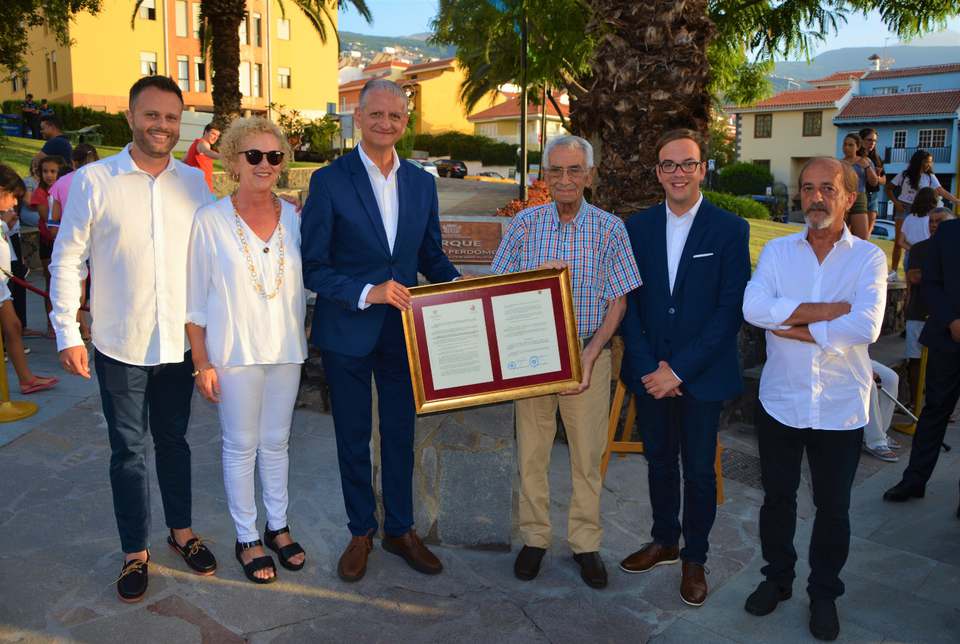 El alcalde de la Villa, junto al propio Pedro Perdomo, presidió este acto que contó también con la presencia del concejal responsable de este distrito, Felipe David Benítez; otros miembros de la corporación municipal; directiva de la asociación vecinal; familiares y amigos del homenajeado y vecinos en general.
