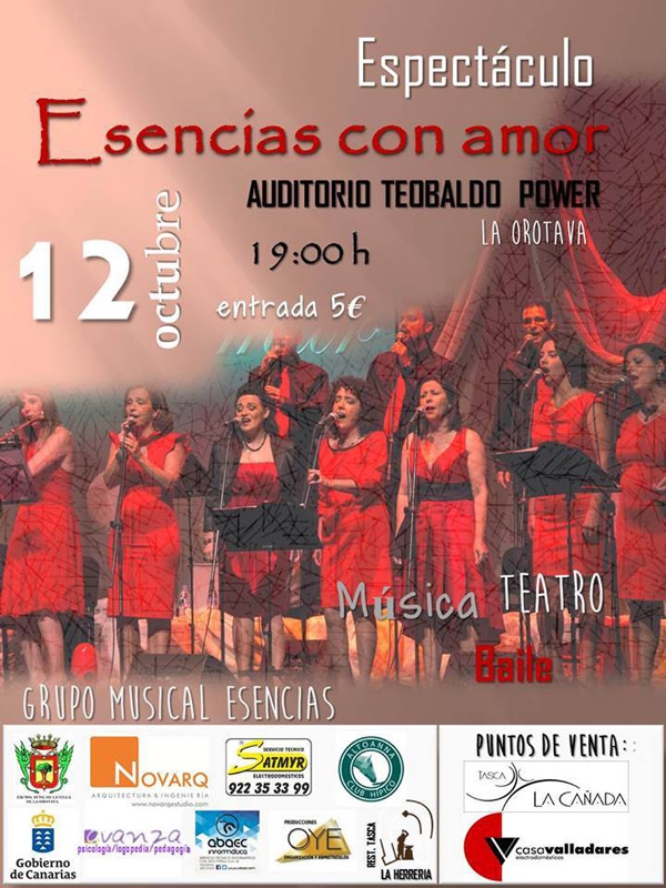 "Esencias con Amor" es un espectáculo creado por el Grupo Musical Esencias, en el que se entremezclan distintas artes escénicas: Teatro, cine, baile y música.