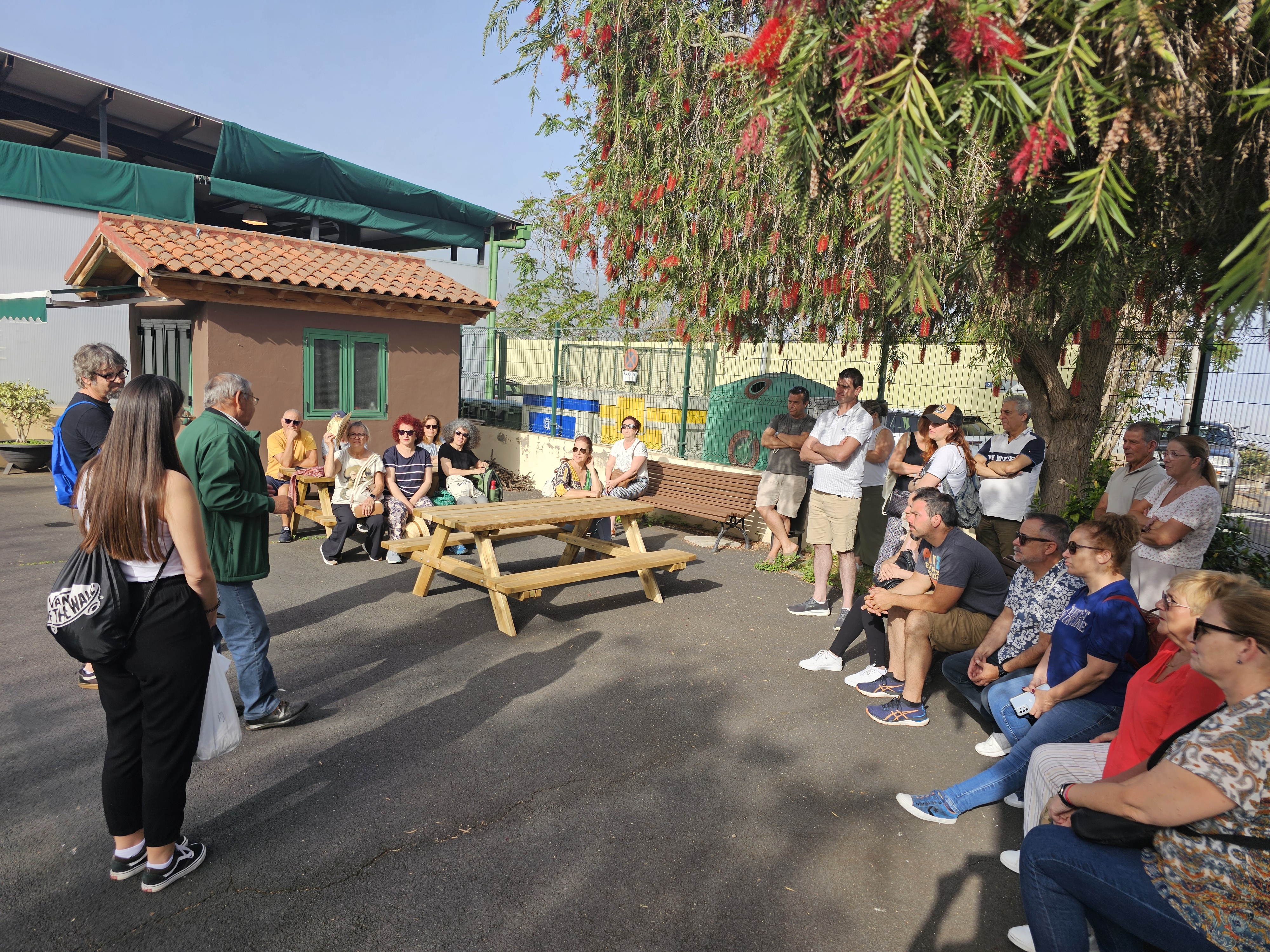 La actividad comenzó a las 9:30h en el Mercadillo del Agricultor de La Orotava donde se pudieron hacer algunas compras tras el recibimiento de Anacleto (Fundador Honorífico del Mercadillo), quien comentó algunas anécdotas y respondió a las preguntas de los participantes en la ruta. Luego se trasladaron en guagua a las Bodegas Tajinaste de La Perdoma donde recorrieron las viñas de cordón trenzado, sistema único en el mundo. En la bodega también pudieron degustar cuatro referencias de vinos comentadas por Agustín García Farrais, enólogo y gerente de las bodegas.