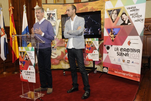 Tres de las mejores voces del panorama español musical actual comparten cartel en la segunda edición del festival La Orotava Suena que, en esta ocasión, contará con la presencia la voz ya reconocida de la malagueña Vanesa Martín; con las canciones flamencas, de coplas o de tango del laureado Miguel Poveda; y con las melodías en clave de pop de la gaditana Merche, como indicaron hoy en rueda de prensa el alcalde de La Orotava, Francisco Linares, y el representante de la productora Art Bembé, Juan Francisco Suárez.