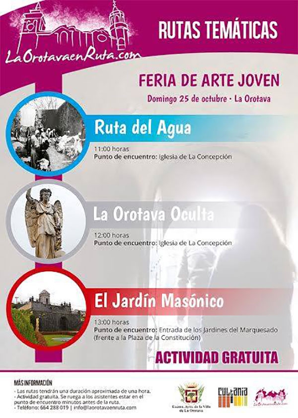 Rutas temáticas guiadas por el casco de La Orotava y sesiones de teatro al aire libre en el jardín La Hijuela del Botánico complementan el programa de actividades previstas para este domingo, 25 de octubre, dentro de la Feria de Arte Joven en la Calle.