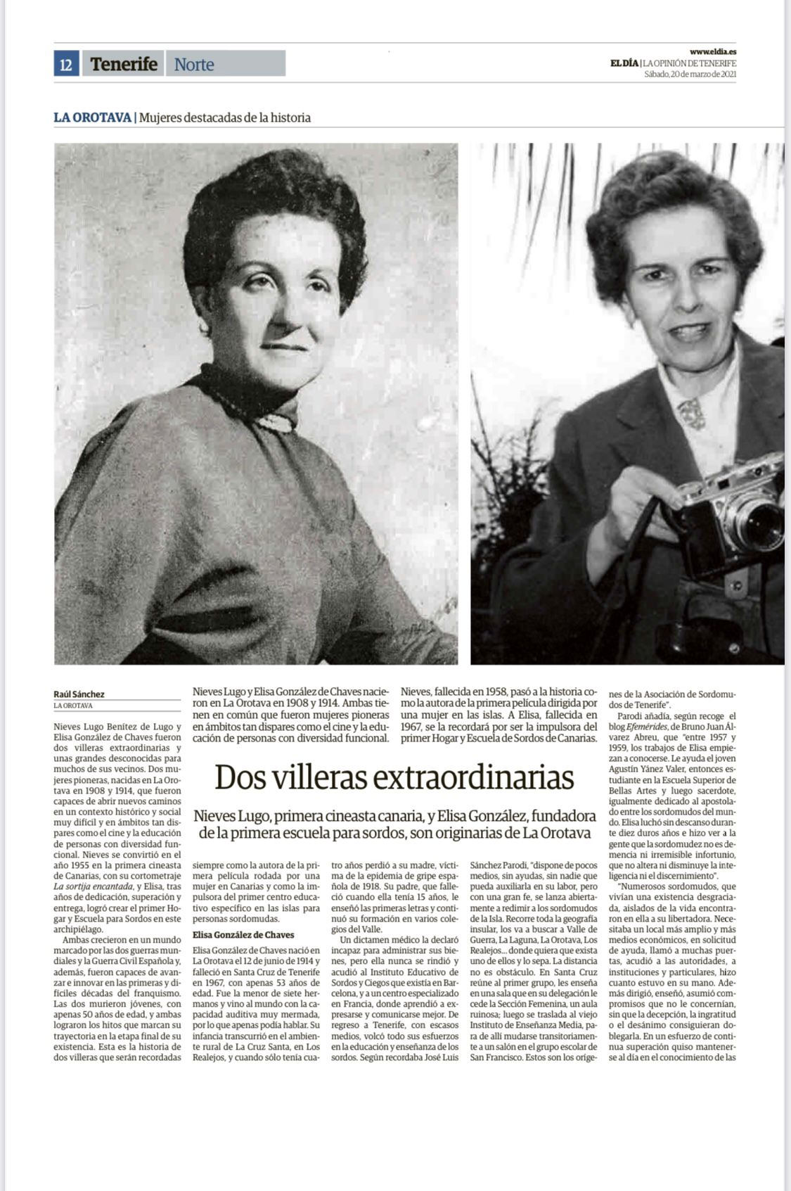 El periódico El Día realiza un interesante reportaje sobre Nieves Lugo y Elisa González, dos villeras que con su contribución y conocimientos engrandecieron el ámbito del cine y la docencia, respectivamente