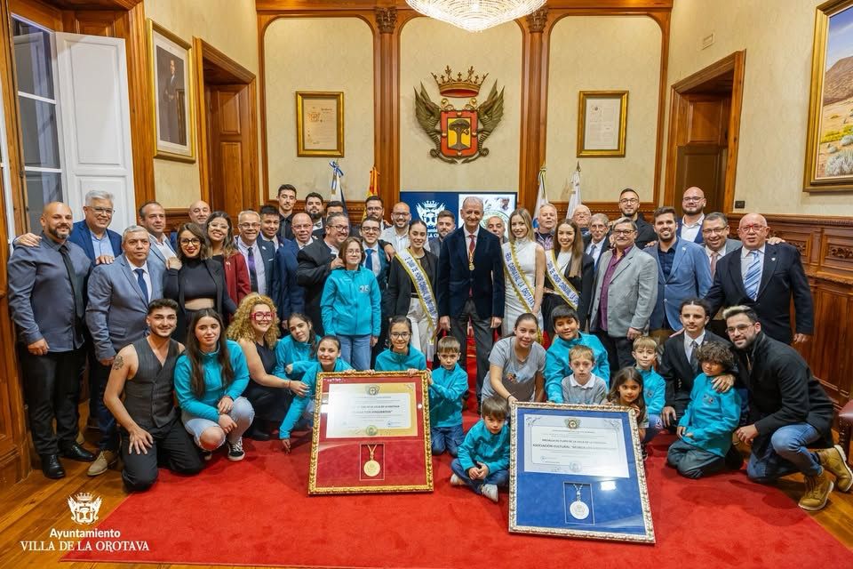 El Salón Noble de la casa Consistorial acogió el acto institucional de entrega de Medalla de Oro y de Plata a la Murga Virgueritos y a la Murga Minivirgues, respectivamente. Estas distinciones, recogidas en el Reglamento de Protocolo, Honores y Distinciones del Ayuntamiento de La Orotava, fueron aprobadas por, por unanimidad, en el pleno ordinario celebrado el pasado 25 de febrero valorando la trayectoria de ambos colectivos lúdico-culturales.
