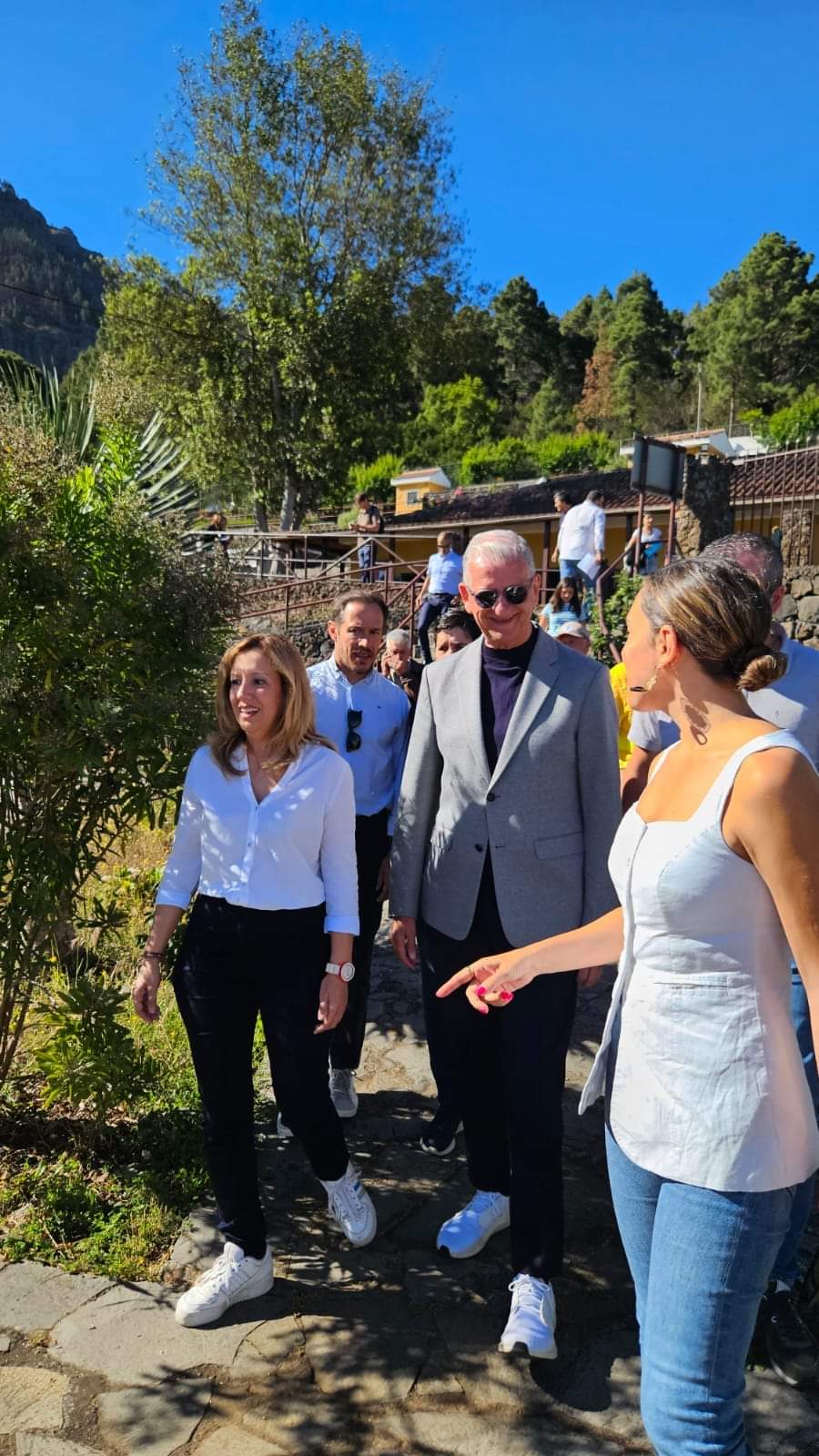 El vicepresidente autonómico y consejero de Economía, Industria, Comercio y Autónomos, Manuel Domínguez; la consejera de Turismo y Empleo, Jessica de León; el consejero de Transición Ecológica y Energía, Mariano Hernández Zapata; la presidenta del Cabildo de Tenerife, Rosa Dávila, y el alcalde de La Orotava, Francisco Linares, visitaron los trabajos de recuperación de las áreas afectadas por el gran incendio forestal del pasado verano que realizan las cuadrillas del Plan de Empleo subvencionado por el SCE para la contratación de parados y de Transición Ecológica y Energía.