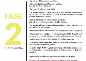 El próximo lunes, 25 de mayo, siguiendo con el proceso de desescalda, pasamos a la fase 2, y aquí tienes información a tener en cuenta.
