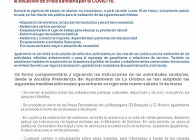 Atendiendo a las medidas extraordinarias puestas en marcha después de que el Gobierno estatal haya decretado el estado de alarma por la rápida propagación del Coronavirus y con el objetivo de de frenarla, protegiendo a...