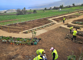 El primer parque comestible de La Orotava alberga unas 60 especies diferentes entre árboles frutales, hortalizas, especies aromáticas y medicinales que ya comienzan a ser visibles y que cuidan 17 personas de la Villa...