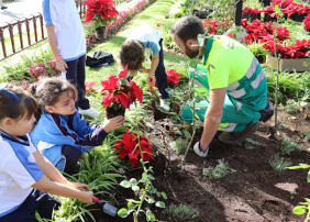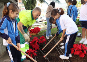Cerca de medio centenar de niños y niñas del colegio de La Milagrosa, con edades comprendidas entre 4 y 6 años, han participado junto a los operarios de jardines del ayuntamiento de La Orotava en la plantación de flores...