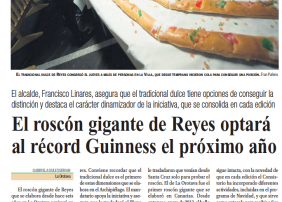 El roscón gigante de Reyes que se elabora hace seis años en La Orotava aspira en 2019 a conseguir el récord Guinness, establecido en 250 metros de largo y elaborado en 2015 por la Cofradía del Martes Santo montillano y...