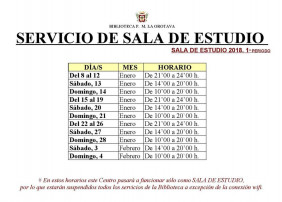 A partir de este lunes 8 de enero de enero comienza en la Biblioteca el primer periodo de Servicio de Sala de Estudio de este año 2018.
