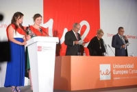 La ceremonia contó con la asistencia de más de quinientas personas entre estudiantes de grado, másteres, posgrados y cursos de expertos, familiares, amigos, claustro de la Universidad, representantes del Gobierno de...