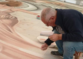 El equipo de la Asociación de las Tradiciones Culturales Artearena es el que se encarga de elaborar el magno tapiz de la plaza del Ayuntamiento que utiliza una quincena de colores naturales del Parque Nacional del...