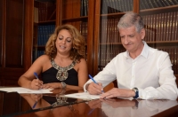 La presidenta del IASS, Cristina Valido, y el alcalde de La Orotava, Francisco Linares, han firmado un convenio de colaboración para la edificación y puesta en funcionamiento de este centro sociosanitario.